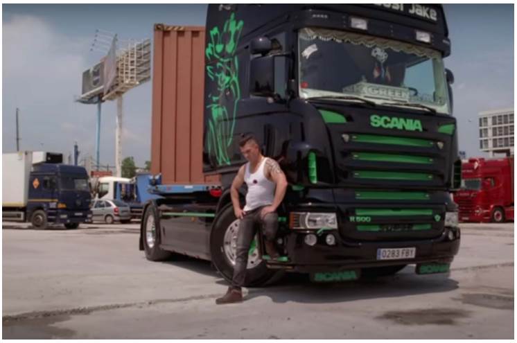 Esta idea contrasta con la metáfora visual “tu mirá clavá es una bala en el pecho”, representada en las escenas industriales, donde se observa a los conductores de camiones con una bala en el pecho, reforzando el simbolismo del dolor emocional. (Figuras 3 y 4). Esta iconografía del impacto puede leerse desde Mitchell (2005), quien sostiene que las imágenes no solo muestran, sino que actúan y en el caso específico de este videoclip afectan, hieren, seducen y resisten.