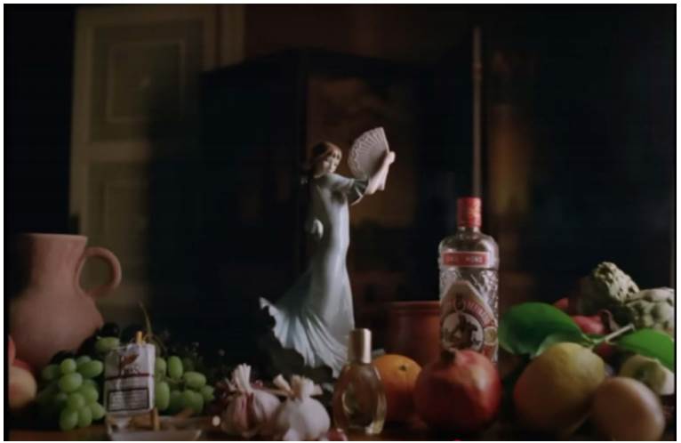 Otra referencia visual significativa es la del bodegón como recurso iconográfico, que aparece en el video a través de una muñeca flamenca de porcelana y otros objetos que evocan un bodegón moderno, como cigarrillos y perfume (Figura 8).
