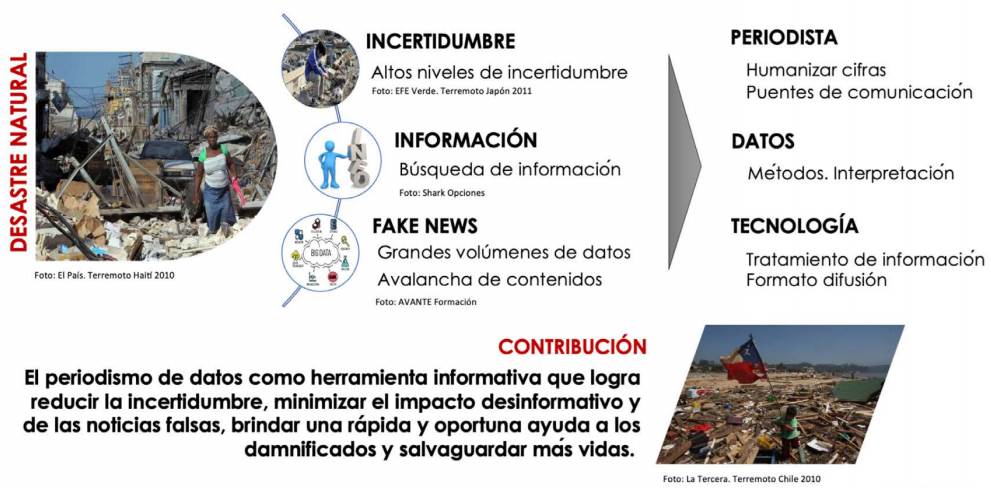 La Organización Panamericana de la Salud (2009) señala que cuando ocurre un fenómeno natural de gran magnitud, el periodismo tiene el reto de transformar la incertidumbre y la comunicación reactiva en información organizada y proactiva (p. 27). Pero, en horas posteriores, no solo hay que enfrentarse a lo incierto del hecho sino también a la desinformación, reflejada en las llamadas fake news o noticias falsas, como ocurrió en el sismo de Haití de 2010 (Oh et al., 2010).