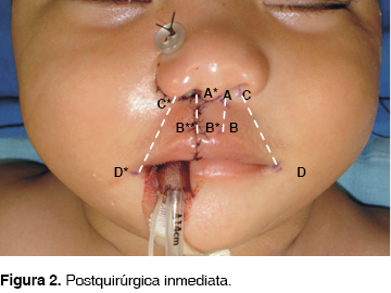 Por medio de la línea de cicatrización (Figuras 5 y 6) se observa reconstrucción de la cresta del lado afectado, la cual puede nacer en la zona central de la columnela o ligeramente antes de la zona central, naciendo en el lado no afectado, prolongándose en sentido oblicuo (lateral e inferiormente) hasta el borde bermellón, formando discreta concavidad en su parte interna y convexidad externa, simulando la cresta filtral ausente, al mismo tiempo contribuye a la formación del surco filtral y arco de cupido.
