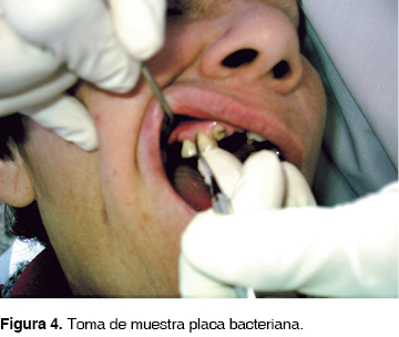 Se efectuó la remoción de la placa supragingival (en el caso que tuviera) previa a la toma de la muestra definitiva. Posteriormente se extrajeron muestras de placa subgingival en los sitios de mayor profundidad de las bolsas periodontales con curetas Gracey 5/6.