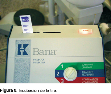 Se pusieron en contacto ambos extremos de la tira reactiva colocándose en la incubadora del BANA.