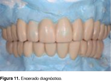 Con el encerado de diagnóstico se elaboran nuevos provisionales modificando la dimensión vertical (Figura 11).