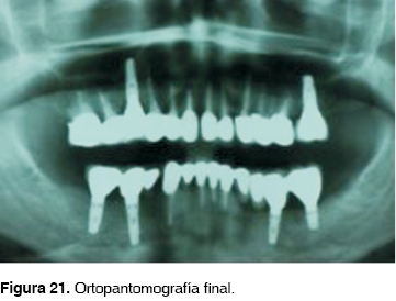 Cementación final y ortopantomografía final (Figuras 20, 21 y 22).