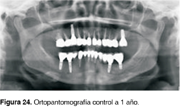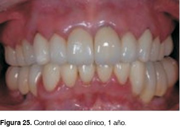 Control periodontal, protésico y radiográfico al año (Figuras 24 y 25).
