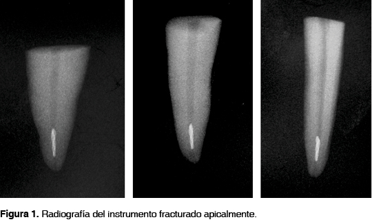 Uno de los objetivos del tratamiento endodóncico es el sellado total del sistema de conductos radiculares después de haber realizado la limpieza y conformación del mismo; sin embargo este objetivo puede estar comprometido por la presencia de un instrumento fracturado.1 La fractura de instrumentos endodóncicos dentro del conducto radicular es un problema frustrante que crea un mayor obstáculo a la terapia de conductos rutinaria.1-3 A pesar de que existe una gran variedad de instrumentos que pueden separarse dentro del conducto, es comúnmente sabido que los instrumentos rotatorios de níquel-titanio (NiTi) se fracturan con una frecuencia mayor que los instrumentos manuales de acero inoxidable.4