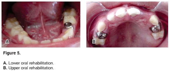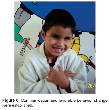 The patient exhibited a change in conduct after the use of didactic material. This enabled communication between clinician and the patient, who began to show a certain degree of acceptance and cooperation to the dental treatment (Figure 6).