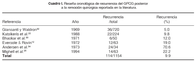 Con base en la literatura consultada, anamnesis y tratamiento efectuado, podemos sugerir cinco probables causas de la recidiva la lesión de GPCG: