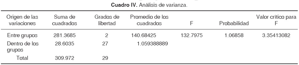 De acuerdo con los valores obtenidos y al análisis estadístico ANOVA, se puede observar una diferencia significativa dentro de las pruebas de microfiltración (Cuadros II, III y IV).