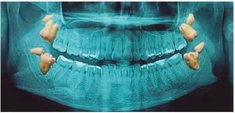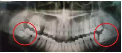 Figure 25 Presence of lower right fourth molar exerting pressure in the distal root of third molar and presence of left lower fourth molar, both compromising the vascular-nervous package.54