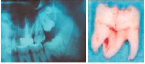 Another example was reported by Gomez Sosa: a 48 year old Venezuelan female, who exhibited fusion of lower third molar and distomolar, involving root canal and chamber. These structures could be linked, either individually or separately according to the development stage at which the union took place29(Figure 17).