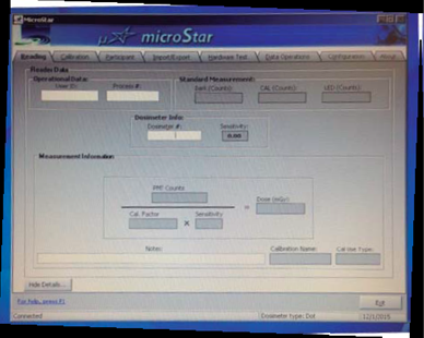 Los pasos para la lectura de los dosímetros de tecnología OSL mediante el uso del software Microstar® Reader (Figura 3) fueron los siguientes:
