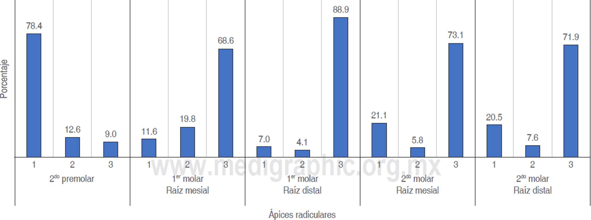 | Raíz distal | 2.82 ± 2.06 |