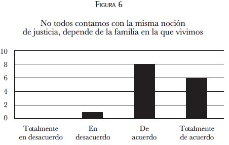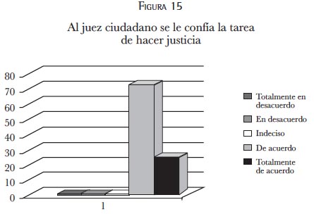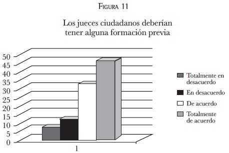 La anterior gráfica plantearía en realidad una hipótesis a estudiar que sería el cuestionamiento sobre "de qué depende la noción de justicia": de la experiencia, de los conocimientos, o de los valores, etcétera. Este cuestionamiento vendría a ser un eje de investigación para replantear la forma de encarar la preparación del juez ciudadano, no sobre su inclusión en el sistema, puesto que la autora de la presente investigación está de acuerdo con su intervención, pero no necesariamente con la forma de su elección ni con su formación previa al juicio dentro de su preparación por parte del juez.