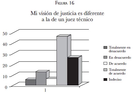 La tendencia a considerar su visión como diferente a la del juez técnico resulta interesante y ameritaría ser profundizada más. Sin embargo, esta aseveración podría plantear cierta posible divergencia ante el concepto de "justicia".