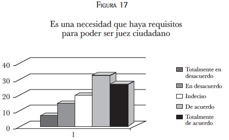 La percepción del propio juez ciudadano muestra la tendencia a considerar las necesidades de ciertos requisitos, capacidades, etcétera, relacionadas con el ejercicio del rol.