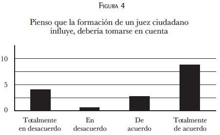 La figura 4 sugiere que para la mayoría de los entrevistados la formación de base previa, como experiencia de vida, es un factor importante para poder afrontar a cabalidad el rol de juez ciudadano, a la que además debería atenderse a la hora de seleccionar a éstos.