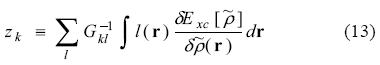 The fitting coefficients xk are obtained by minimizing the density self-interaction error [10], resulting in the following linear equation system: