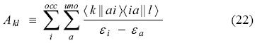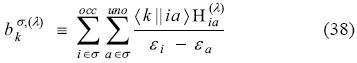 Here λ denotes the perturbation parameter, e.g. an electric field component in the calculation of polarizabilities, εi and εa refer to orbital energies of the ith occupied and ath unoccupied orbital.