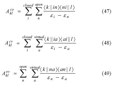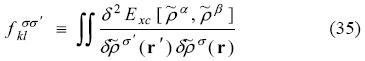 and Eq. (36) reduces to Eq. (24). The following identification can be made for the closed-shell exchange-correlation kernel