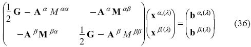 This time, the block coupling matrices are defined using super-scripts to identify the summation domains. They are presented as