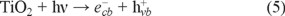 In addition to the Fenton-related technologies, the photocatalytic process has become a commonly used technology because it can completely remove organic compounds [23]. Titanium dioxide (TiO2) is the most common semiconductor material for photocatalytic processes, and it has been applied in several photocatalytic water treatment studies [24,25]. The inherent advantages of this material are its low cost, its low toxicity, its good photocatalytic properties, and its particularly wide band gap (3.2 eV), which results in good stability and prevents photo-corrosion [26]. When TiO2 nanoparticles are subjected to radiation with sufficient energy, an electron is promoted from the valence band to the conduction band of the semiconductor, as indicated in Equation 5: