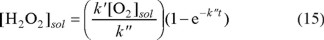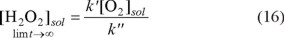 At very long reaction times, Equation 15 predicts that the concentration of H2O2 loses its dependence on time (as shown in Equation 16), reaching a constant value that depends only on the constants, k´ and k", and the concentration of dissolved O2 in the electrolytic medium.