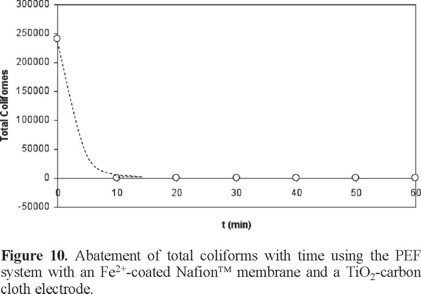 These results are in accordance whit reported recently by S.N. Hussain, et al [37], where these authors carry out disinfection performance of a unique process of adsorption combined with electrochemical treatment.