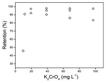 Retention of chromium as a function of the initial concentration