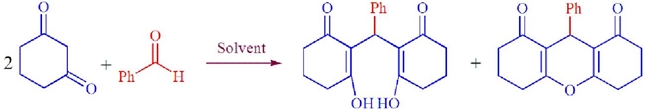Xanthenes are one of the most broadly distributed groups of natural compounds. Most xanthene derivatives have several biological activities such as the anti-inflammatory,[1] anti-viral,[2] anti-tumor,[3] and anti-cancer [4] properties. Moreover, in the field of material science, they are used as dyes,[5] pH-sensitive fluorescent materials,[6] and photo-stable laser dyes.[7] Thus the production of different xanthene derivatives is of great significance. One of the typical methods used for the synthesis of xanthene derivatives involves the condensation of aldehydes using 5,5-dimethyl-1,3-cyclohexanedione or 1,3-cyclohexanedione in the presence of a catalyst. However, in the absence of a catalyst,[8] the reaction ends just after the Knoevenagel-type adduct formation to yield an open-chain intermediate, 2,2'-aryl/alkyl methylene-bis(3-hydroxy-5,5-dimethyl-2-cyclohexene-1-one). On the other hand, the reaction of aldehydes with 1,3-cyclohexanedione or 5,5-dimethyl-1,3-cyclohexanedione for the synthesis of xanthene derivatives is carried out in the presence of different catalysts such as ZnO/CH3COCl,[9] CTAB,[10] PVVP-BF3,[11] CH3COOH,[12] ionic liquids,[13] and proline.[14] The value of a method for the synthesis of this significant group of heterocyclic compounds mainly depends upon identifying a cost-effective, simple, and eco-friendly catalyst, and a simple work-up procedure. The above-mentioned methods, however, show varying degrees of achievements as well as limitations such as low reaction yields, lengthy reaction times, harsh reaction conditions, use of toxic and costly reagents/catalysts, and complex work-up procedures. Keeping in view the drawbacks associated with the reported protocols as well as the increasing importance of xanthenes in industrial and pharmaceutical chemistry, there still remains a high request for the synthesis of efficient, more general, eco-friendly, additive, and catalyst-free protocols to assemble such scaffolds.