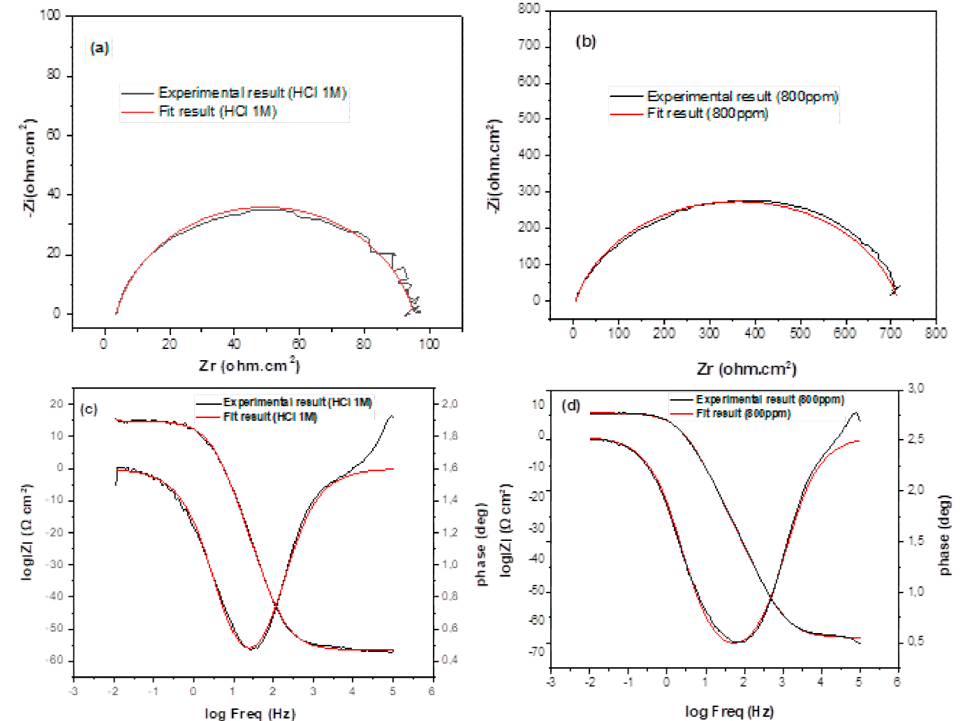 Measurements by EIS are carried out at the OCP, over a frequency range from 100 kHz to 10 mHz with a perturbation using a signal of equal amplitude at 10 mV. As same as weight loss measurements, experiments were repeated at least three times to check the repeatability.