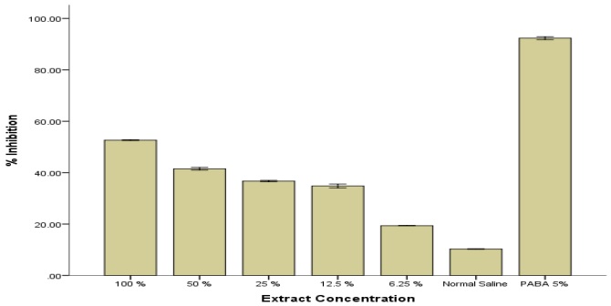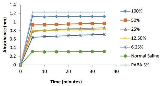 The control experiment was set up and did not contain MFSO, while p-hydroxybenzoic acid (5 % PABA) was used as standard agent.