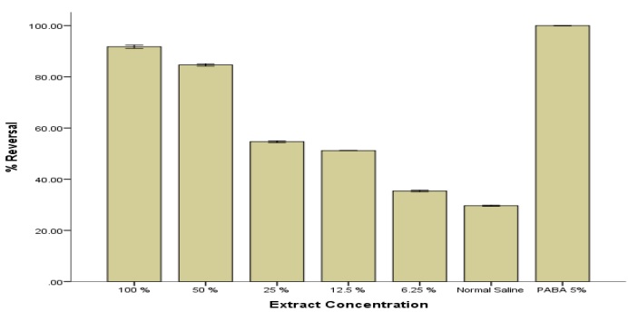 The sickling reversal test was performed as described by Ekeke et al. [32]. Briefly, 2 drops of HbSS blood were mixed with 2 drops of freshly prepared sodium metabisulphite and the mixture was covered. The mixture was incubated for 30 min during which sickling was induced. This was followed by the addition of 2 drops of buffered extract and the resulting mixture was incubated for another 30 min. Buffer was used in place of the extract for the control, and a drop of each was placed on a slide and viewed at × 40 magnification. The percentage reversal was calculated as: