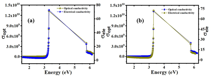 Optical conductivity and electrical conductivity are important properties of materials which are calculated by the following equations [36,37].