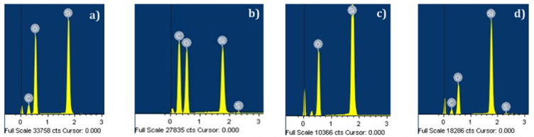 The micrographs in Figures 12-19 show the morphologies of the obtained materials. For the mesoporous MCM-41 shown in Fig. 12 and 13, it can be observed that the material consists of agglomerates of amorphous particles with mostly smooth surfaces, and these particles exhibit varied sizes. It should be noted that this morphology is related to the synthesis method used since the ultrasound-assisted technique results in the formation of agglomerates with curved surfaces. Figures 14-16 show micrographs of the MCM-41 material with incorporated waste polystyrene. A mixture of different morphologies, textures, and sizes can be observed, which can be attributed to the fact that integrating polystyrene in the synthesis alters the initial morphology (Fig. 12 and 13), which comprises regular-shaped rolls or spheres. In addition, the ultrasound-assisted technique generated agglomerates of quasi-spherical particles that were also present in the final morphology. The calcination process for obtaining the mesoporous material can lead to the formation of laminar spherical structures, such as those shown in Fig. 15 for the PS-MCM-41 material. Fig. 20 shows the histograms of the particle sizes of the obtained materials, indicating the smallest particle size corresponds to MCM-41 and that the addition of PS increased the particle size. With the functionalization of both MCM-41 and PS-MCM-41 with PSSA, an increase in the particle size was also observed. The particle size classifications obtained in this study were MCM-41<PS-MCM-41<PS-MCM-41-PSSA<MCM-41-PSSA. In Fig. 21, the elemental composition of the materials is qualitatively appreciated, and Table 4 shows the elemental quantification of the materials obtained and analyzed by X-ray energy dispersive spectroscopy.