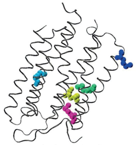 A pioneering information-theoretical analysis of 18 amino acids from bacteriorhodopsin (1C3W) was conducted. The Shannon entropy, Fisher information, and disequilibrium were used to characterize amino acids by their delocalizability, order, and uniformity, forming a scheme that classifies them into four major families: aliphatic, aromatic, electro-attractive, and tiny.