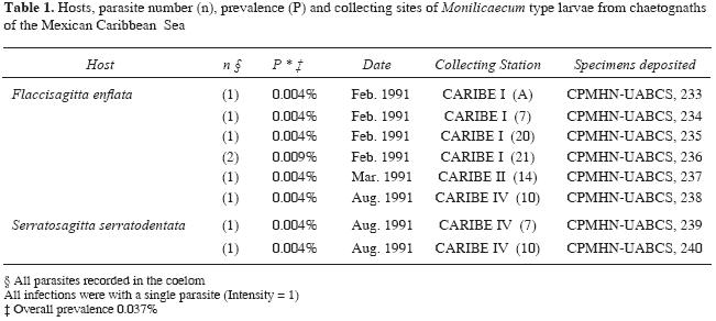 Key words: Didymozoidae, Monilicaecum, chaetognaths, Mexican Caribbean Sea.