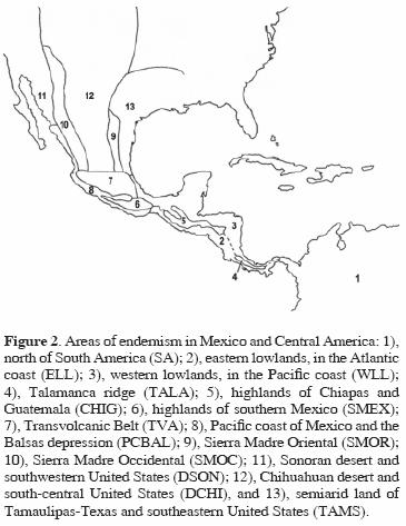 Areas of endemism in Mexico and Central America and biogeographical methods.