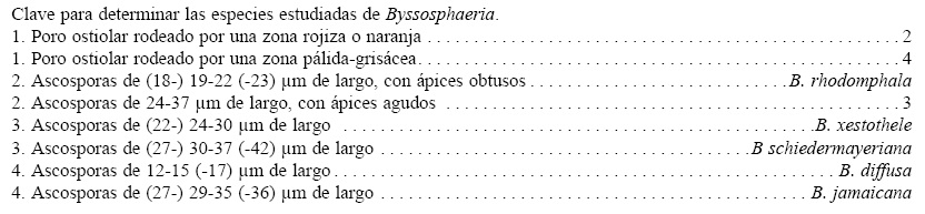 Clave para determinar las especies estudiadas de Byssosphaeria.