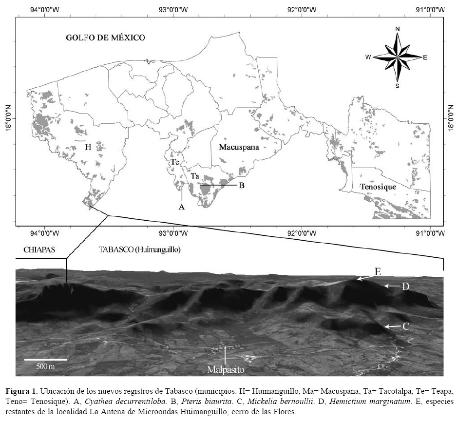 Key words: tropical montane cloud forests, Huimanguillo, pteridophytes, Tacotalpa, Teapa.