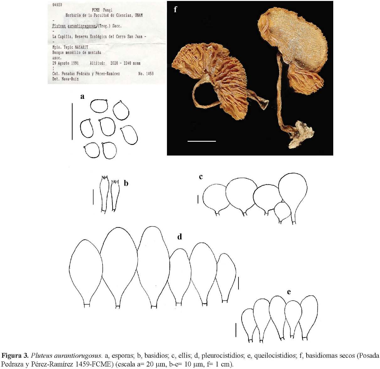 En México varios ejemplares fueron citados como Pluteus aurantiorugosus (Cifuentes et al., 1989; Vargas et al., 1992; Rodríguez, 1998b; Rodríguez y Guzmán-Dávalos, 2000, 2001). Con base en el estudio de éstos, se encontró que sólo 3 de los 13 especímenes examinados, corresponden a lo descrito por Consiglio (2000), aunque incluso entre ellos se observó ciertas diferencias en la longitud de los pleurocistidios.