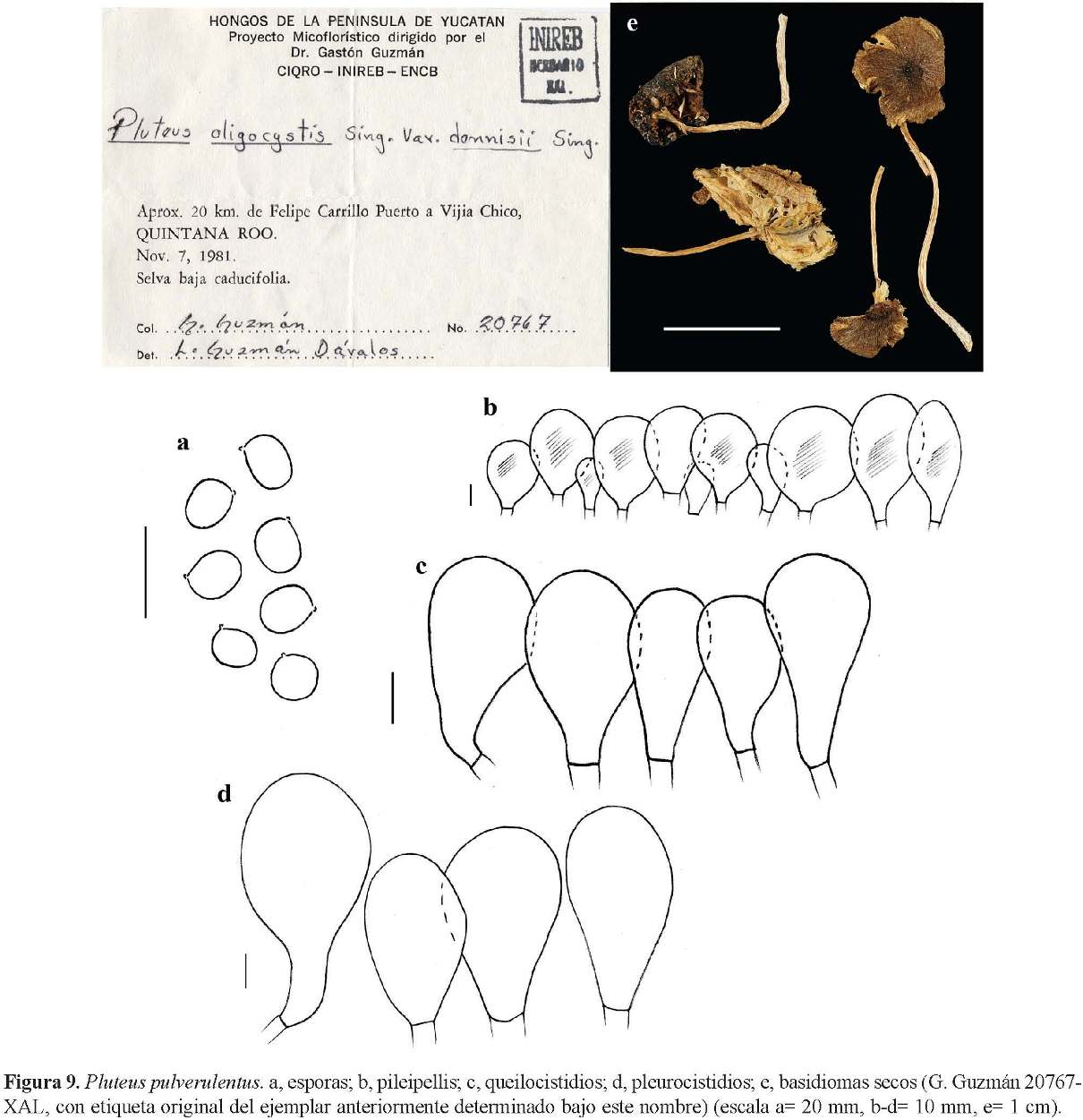 Comentarios taxonómicos. Pluteus albostipitatus var. poliobasis se distingue de la variedad típica, por el color grisáceo oscuro hacia la base del estípite, y no blanco observado en esta última (Singer, 1973). La descripción macro y micromorfológica del material tipo de la variedad poliobasis, no fue incluida por Singer (1973), sólo la diagnosis del taxón.