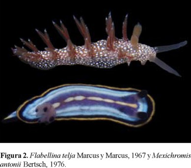 Especies holoplanctónicas pelágicas y en micromoluscos como los escafópodos se han estudiado recientemente (Ríos-Jara et al., 2003), así como muchas especies de opistobranquios (Bertsch, 1973, 1979, 1990, 1993; Hermosillo, 2003, 2009, 2011; Behrens, 2004; Hermosillo y Valdés, 2004, 2007, 2008; Behrens y Hermosillo, 2005; Hermosillo et al., 2006; Millen y Hermosillo, 2007; Hermosillo y Gosliner, 2008; Zamora-Silva y Naranjo-García, 2008; Behrens et al., 2009; Angulo-Campillo et al., 2011).