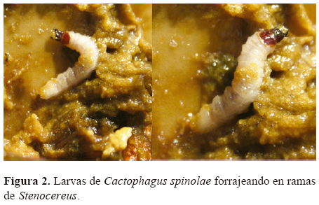Las cactáceas columnares del género Stenocereus son conocidas como "pitayas" y representan una fuente de recursos alimenticios rica en nutrientes. Una investigación arqueológica en Tehuacán, Puebla (Smith, 1967) registra el consumo de frutos y semillas de Stenocereus desde tiempos prehispánicos. El uso comestible se ha conservado y diversificado a productos procesados como mermeladas, aderezos, paletas, bebidas fermentadas y colorantes naturales; además, en diversas regiones se utilizan como combustible, madera, cercas vivas y para la retención de suelo (Luna-Morales, 2004). Si bien las pitayas han sido ampliamente estudiadas desde el punto de vista ecológico y etnobotánico, no hay registros previos sobre herbívoros, por lo que éste es el primer registro y cuantificación de daño provocado por larvas de Cactophagus spinolae (Gyllenhal) sobre 2 especies de cactáceas columnares: Stenocereus pruinosus (Otto) Buxb. y Stenocereus stellatus (Pfeiff.) Riccob. en 2 regiones del centro de México: valle de Tehuacán y Mixteca baja.