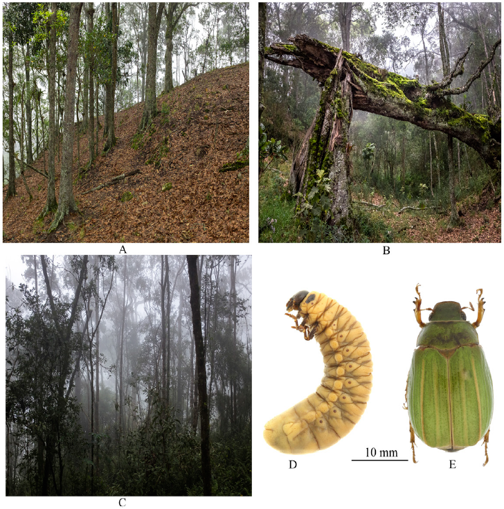 Biología. Adultos de hábitos nocturnos, generalmente atraídos por las fuentes de luz. Vuelan entre las 7:00 PM a las 04:00 AM. La emergencia de adultos se presenta en la segunda temporada de lluvias del año (octubre-diciembre), con algunos especímenes que emergen hasta junio. Las larvas se desarrollan en el suelo de robledales (Quercus humboldtii Bonpland, 1805, Fagaceae), a una profundidad de 10 a 25 cm. Las larvas pupan en una celda (28.01-30.01 mm de largo), que elaboran con tierra entre 25 a 30 cm por debajo de la superficie. La pupa queda inmersa en la exuvia larval como en todo los otros Rutelinos (Neita y Morón, 2017). El hábitat de robledales es fundamental para los escarabajos Pleurosticti en zonas altoandinas, ya que constituyen un componente importante de la edafofauna, la cual contribuye en los procesos de descomposición de la materia orgánica depositada en el suelo, producto de los eventos de muerte de estos árboles.
