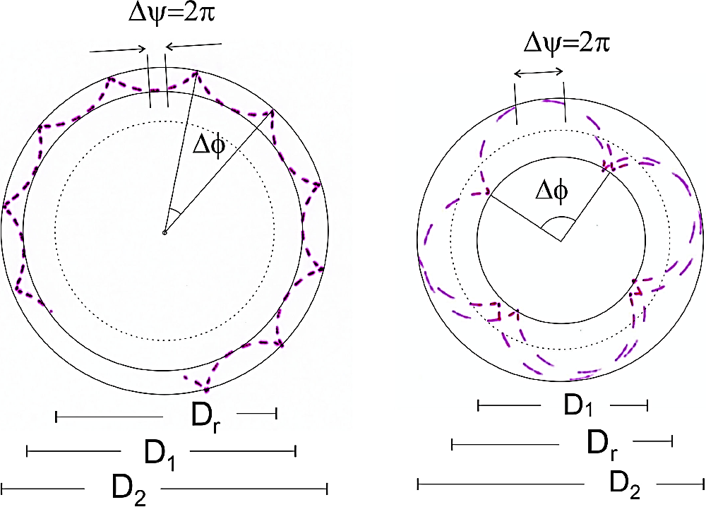 ωp=nΔϕtΔn,ωn=2πntΔn,ψ˙=2πnt,tanθ02=D1D2Dr.