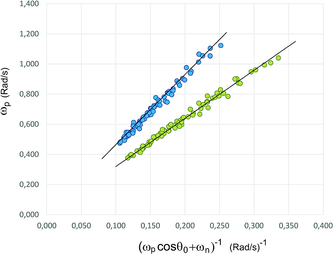 According to (23) the graphs of ωn in function of (ωp cosθ + ωn )-1, present a linear form with a slope of μ/I1.
