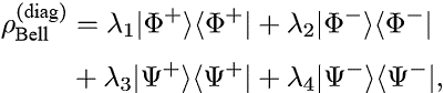 do concentrate quantum correlations as well as possessing non-zero entanglement. ρBell indicates that it is given in the Bell basis. Actually, if we arrange their eigenvalues λi in decreasing order, we obtain