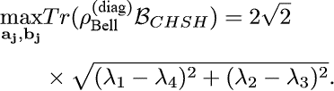 However, we can ask ourselves whether a particular class of two qubit mixed states exists such that entanglement and non-locality imply each other. If those states exist, they have to violate the CHSH maximally. In other words, we have to look for those mixed states whose quantum correlations are more concentrated. One well-known result 30,31 is that