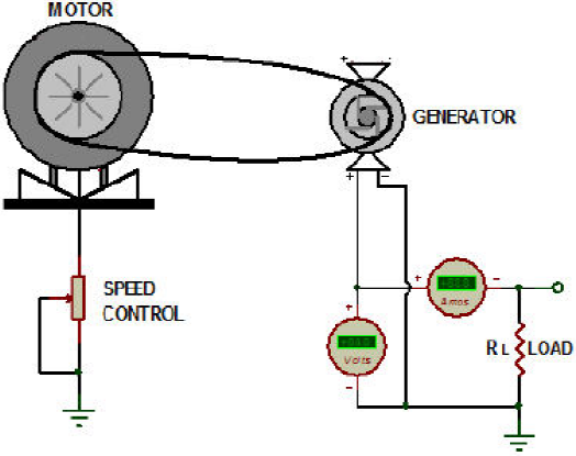 The advantages of this system are that can be constructed from a simple and cheap set of electrical and mechanical components that does not requires special conditions like three phase sources, electrical isolation or similar stuff; its development and operation can be done at indoor conditions without interferences and its start up can be easily done by undergraduate students. On the other hand, its principal disadvantage consists that is a simplified system; power losses due to mechanical friction, leakage currents or other similar facts are not considered on this prototype.